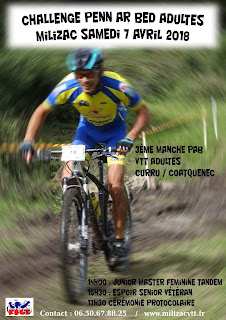 Samedi 7 Avril Milizac VTT organise une épreuve du Challenge Pen Ar Bed VTT, les cadets sont autorisés à prendre le départ, nous y retrouverons Antoine Clavier, Titouan Lucas, Kevin Souben, Théo Floch et Thibault Mazella.